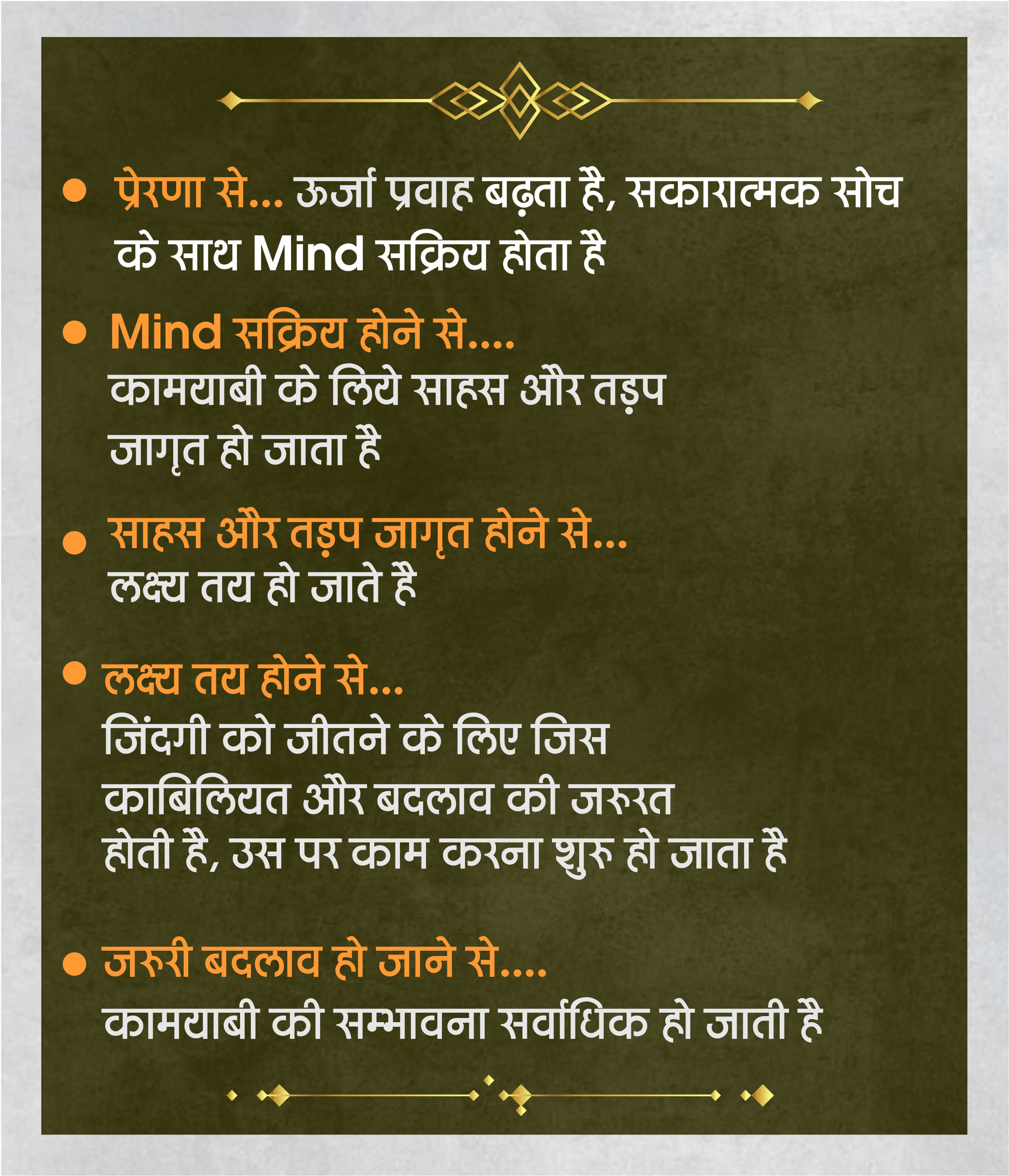 जब हम उदास, असफल और हारा हुआ महसूस करते हैं तब प्रेरणा (Motivation) हमारे जीवन में महत्वपूर्ण भूमिका निभाती है। ऐसे समय में प्रेरणा (Motivation) आपको आपके लक्ष्य के प्रति शीघ्र ऊर्जावान, उत्साहित और प्रेरित करती है।